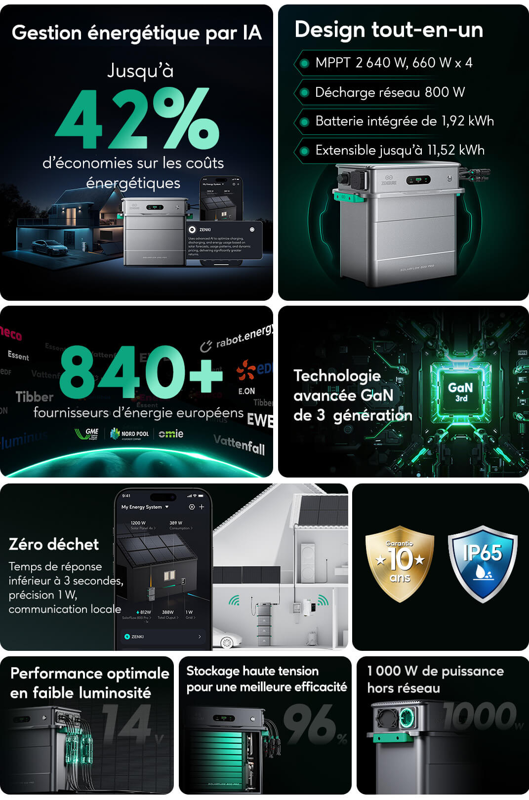 *Données basées sur des tests en laboratoire Zendure dans un modèle de tarification dynamique. Les économies réelles peuvent varier en fonction des tarifs locaux, de la configuration du système et des habitudes de consommation énergétique du foyer.