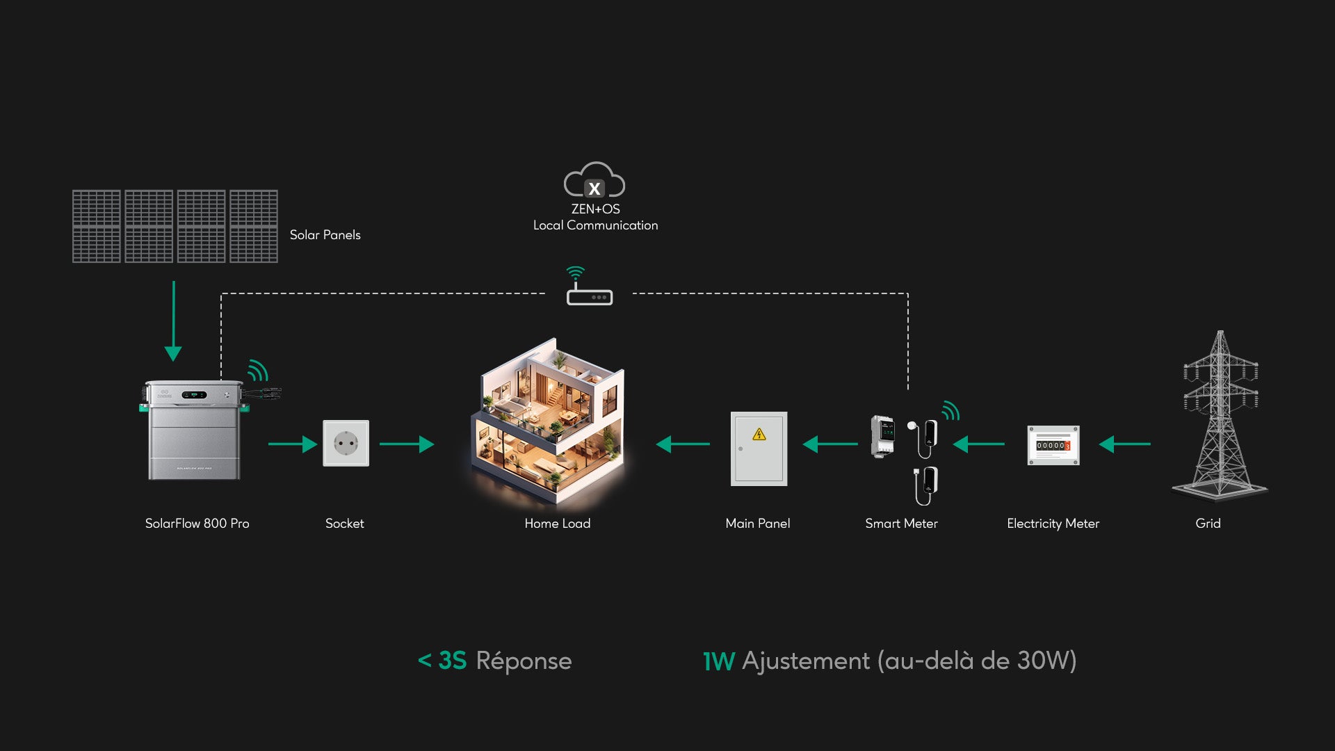 Zen+ OS, intégré au SolarFlow 800 Pro et à divers appareils intelligents, vous offre une maîtrise totale de votre énergie. Bénéficiez d’une réactivité instantanée, d’une fiabilité inébranlable même sans connexion Internet, et d’une gestion énergétique ultra-précise qui réduit le gaspillage au minimum.