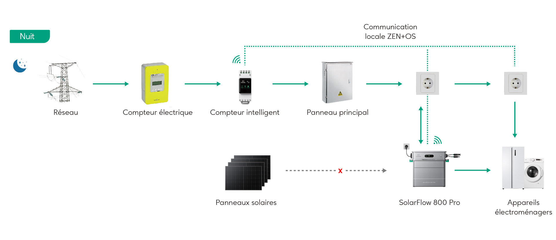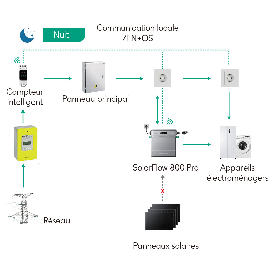 Conformément aux réglementations de sécurité de l'UE, le SolarFlow 800 Pro cesse d'alimenter le réseau en cas de coupure de courant.