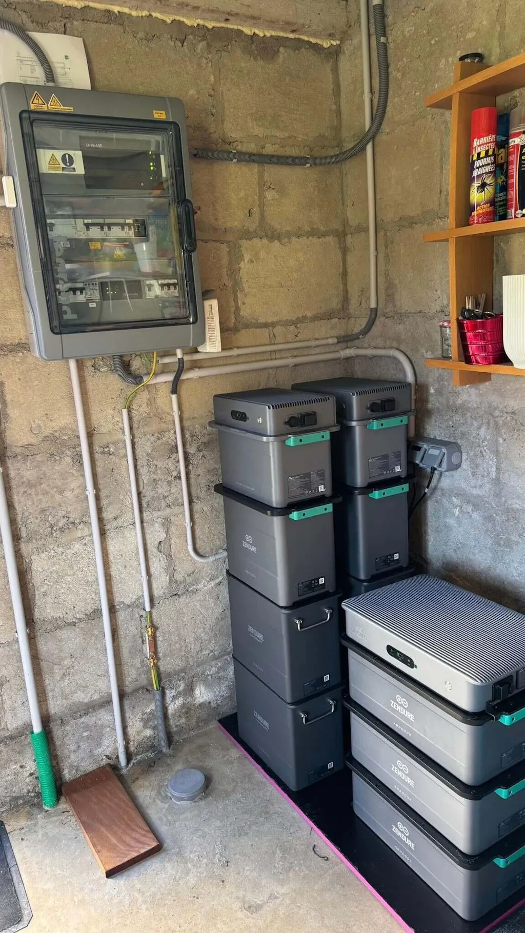 Empilez les batteries. Connectez le PV. Branchez au mur. Activez dans l’app. Terminé.